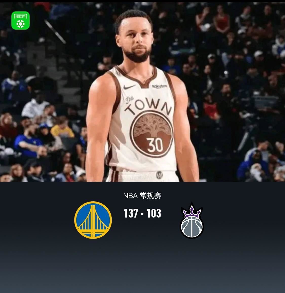 勇士137-103大胜国王,库里27+10,德罗赞空砍24分 北京时间1月10日NBA 常规赛,金州勇士对阵萨克拉门托国王。上半场双方紧咬比分,半场勇士63-59国王,直至第三节后半段国王一度追平比分,但随着第三节节末最后3分钟,勇士一波53-19攻 2026-01-10